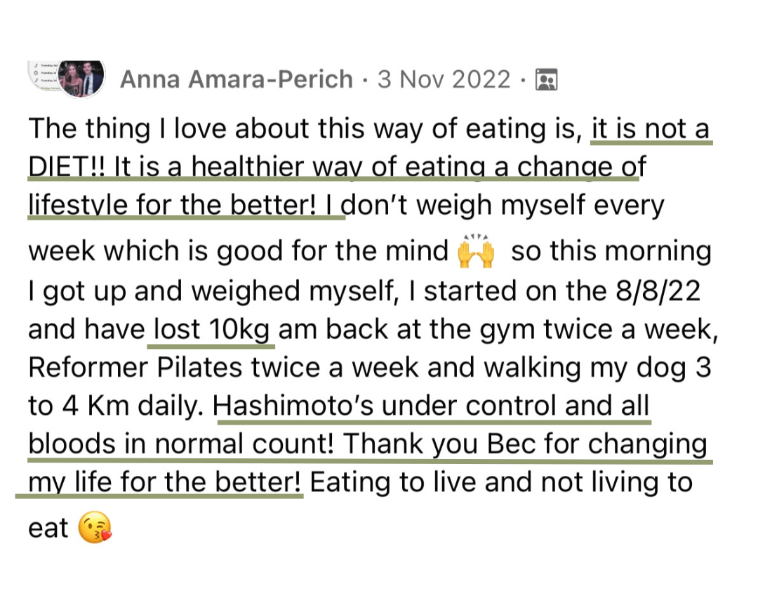 "I love the simplicity of the plans and how Bec has carefully considered gut health as a primary focus along with weight loss."