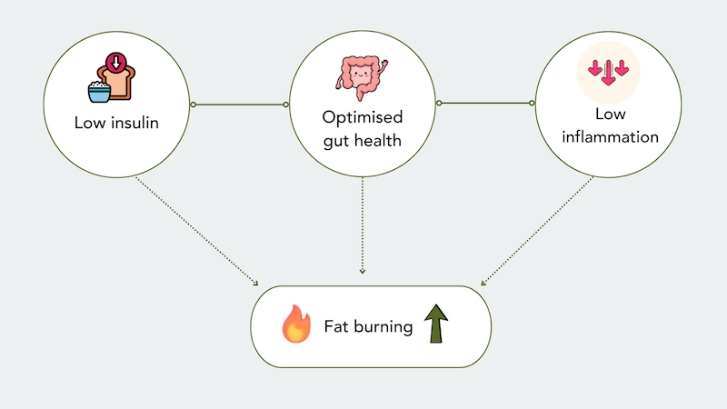 This approach keeps blood sugar steadier and insulin demand lower, so your body can finally access stored fat, energy can rise and cravings can settle.